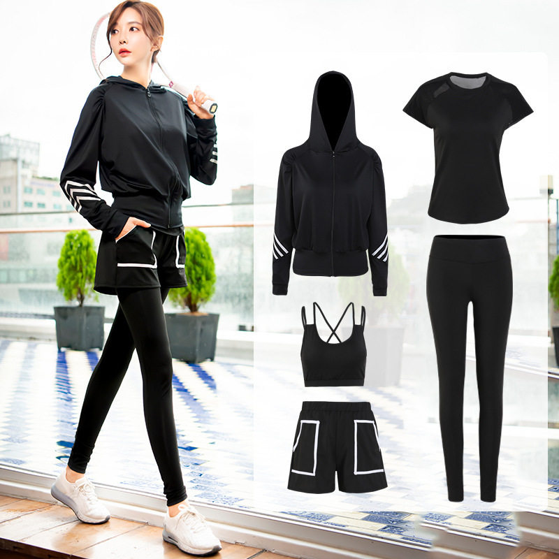 Yoga suit women's summer style long-sleeved gym five-piece quick-drying suit nice-looking pink loose sportswear tide