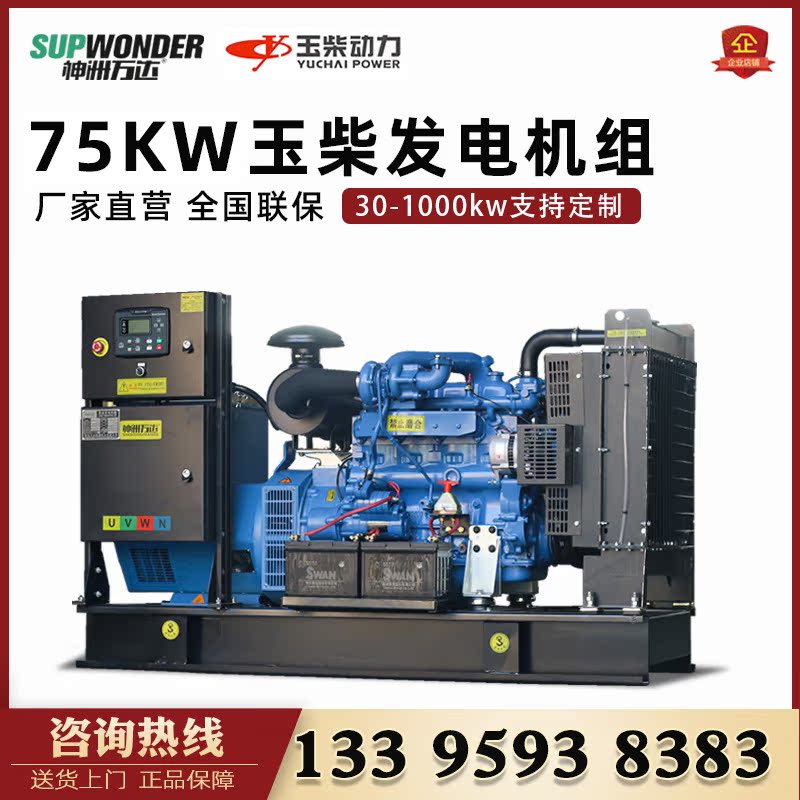 Shenzhou Wanda 75 KW Yuchai generator set full copper brushless motor 75kw generator main standby engineering