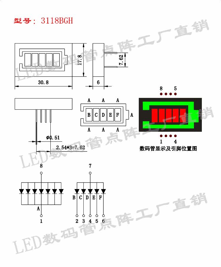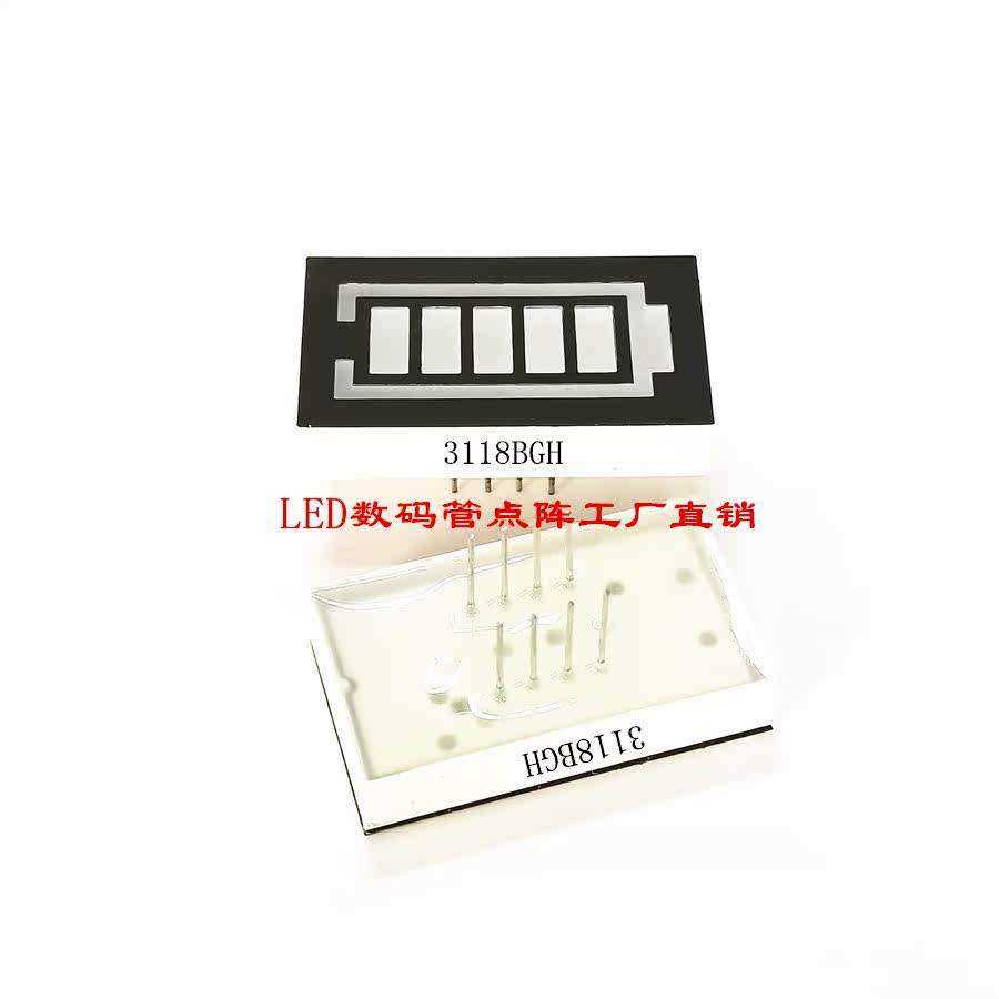 5 pieces of red and green double color power display glow tube (outer yellow green inner red) 31*18mm battery light bar 3118BGH