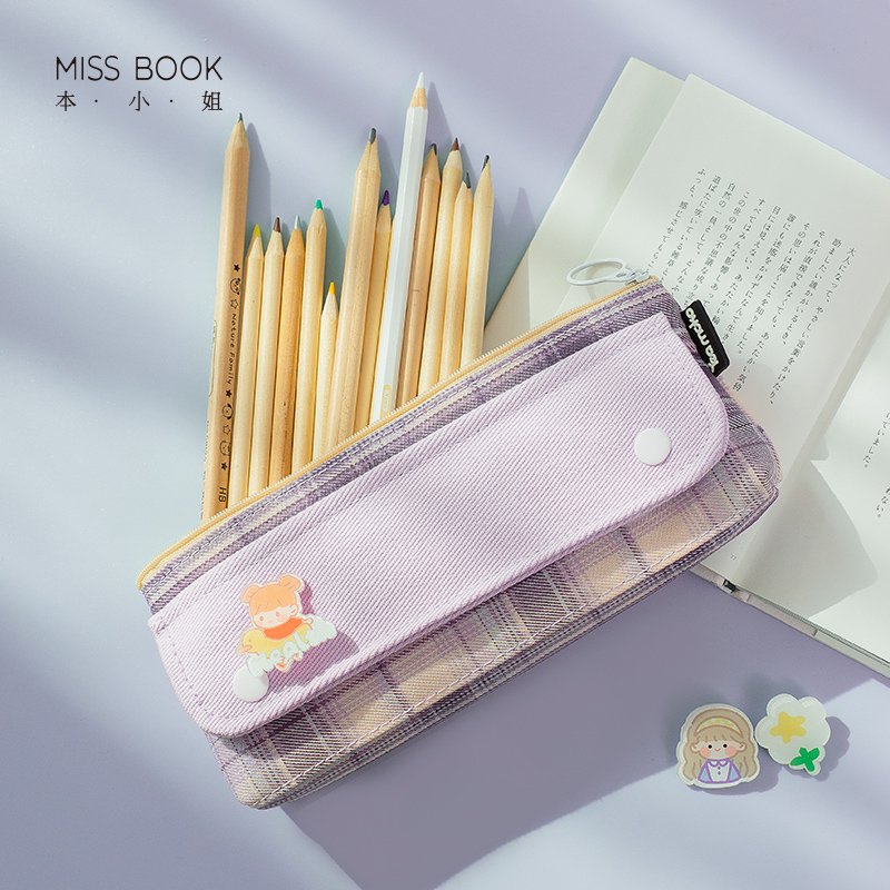 Plush suede pen bag cute cute cute girl Heart ins Wind day Department Large capacity Han Primary School Fresh Learning Stationery Containing Supplies Stationery Bag Creative Pencil Bag Retro art JK pen bag