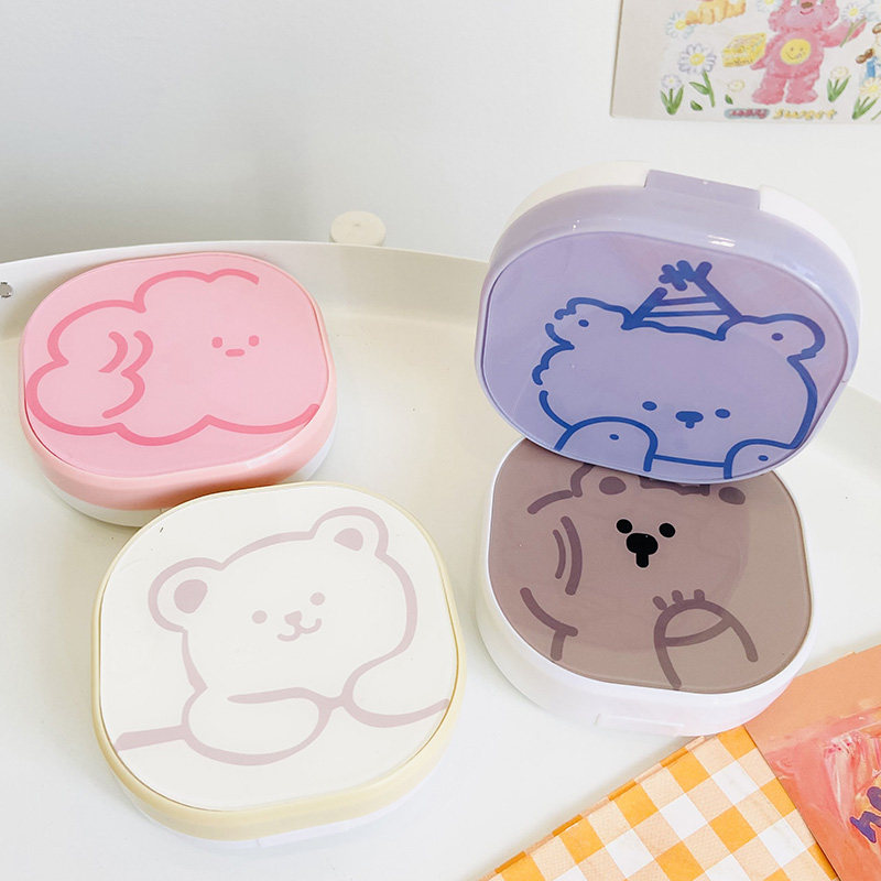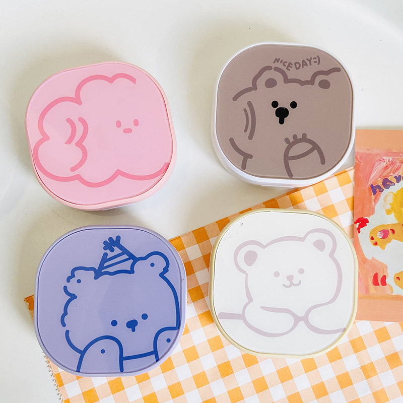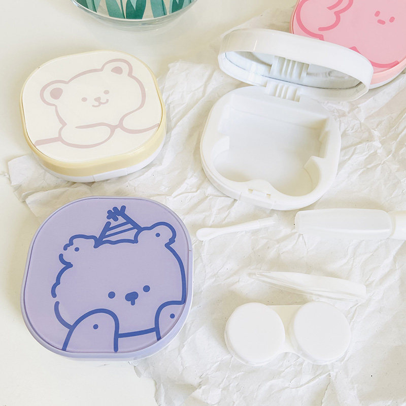 Pupil Box Lins Line Bears Cute Retro Simple about portable contact lenses Nearsightedness Care Partner
