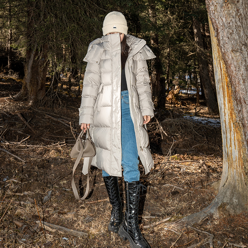 LEIYU long version down jacket women's waist 2021 winter new thickened small tooling belt hooded jacket