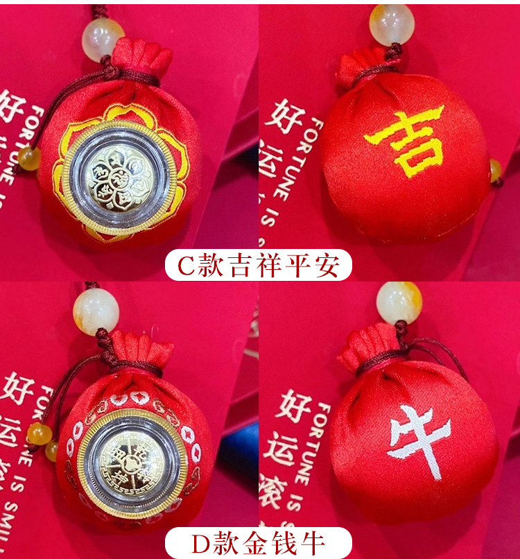 Bull Year Foot Gold Can Swivel Bull turning dry Kun Cartoon fragrant sack red packets Gift children Carry-on Bag Ping Anfu Pendant