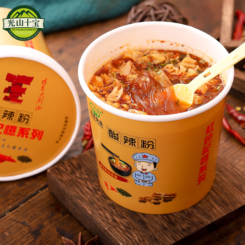Henan Xinxian chutney barrel Xinyang Dabieshan specialty food fast food fine vermicelli 140g barrel whole box 6 barrels
