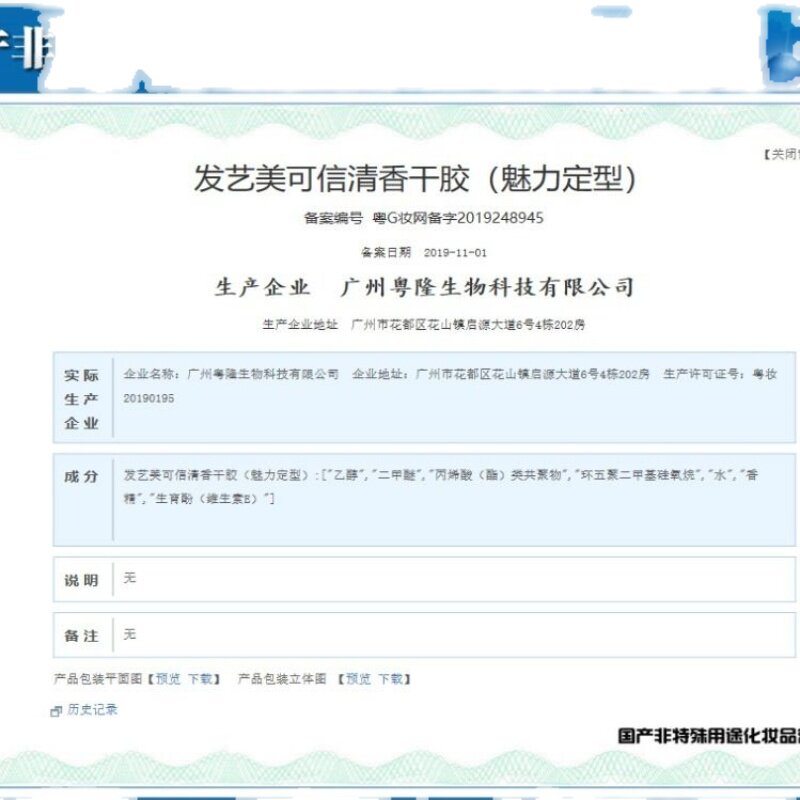 Cosmetics filing number Registration certificate number: