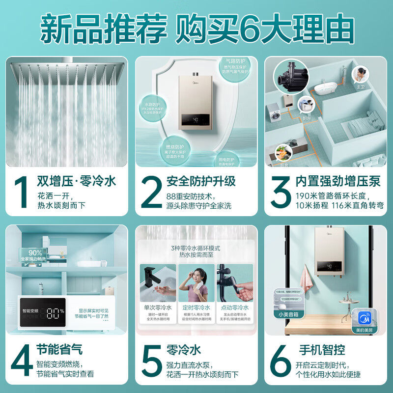 New product] Beauty KD5 Gas water heater Double pressurization zero cold water 13L 16L toilet bath thermostatic Anti-freeze-Taobao