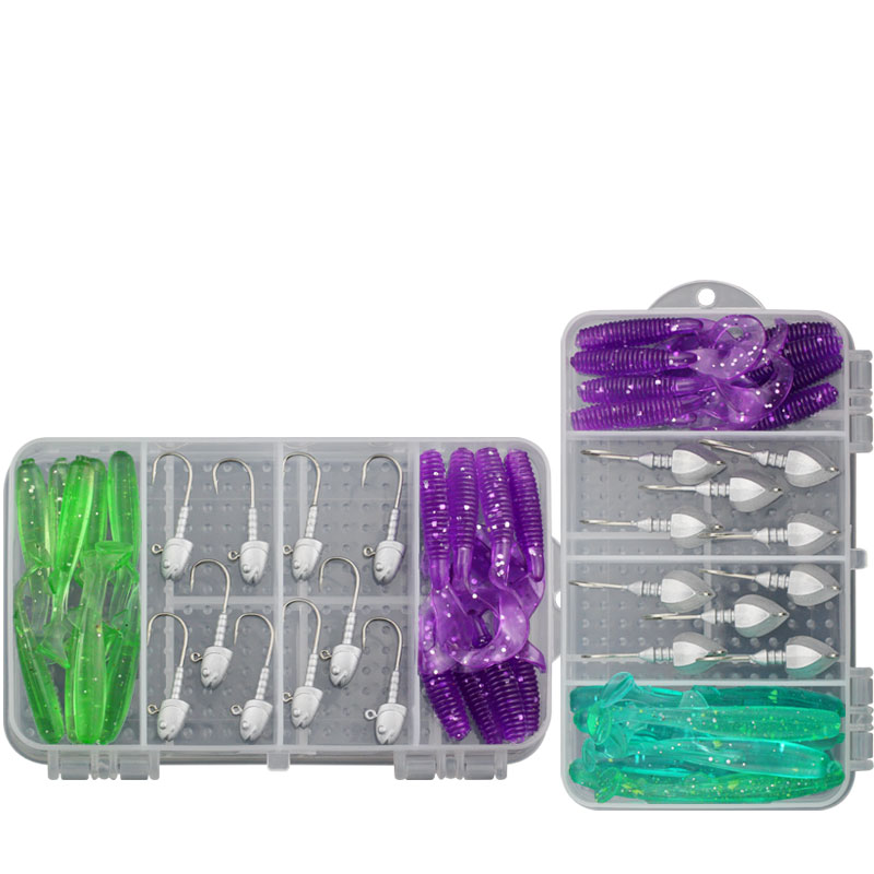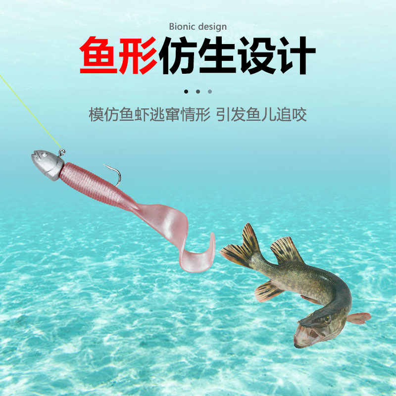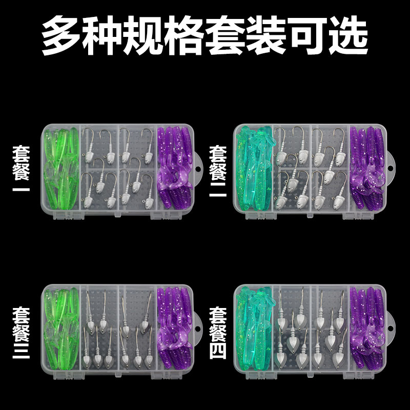 Luya bait set Lead head hook Luya soft worm Soft bait Capuchin T-tail micro matter Freshwater small-billed bass Black fish