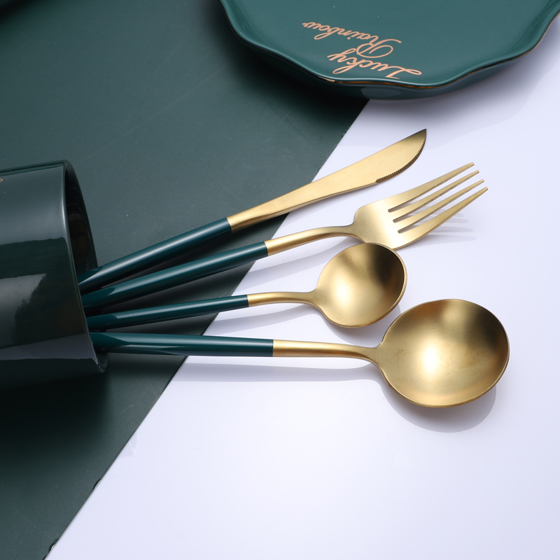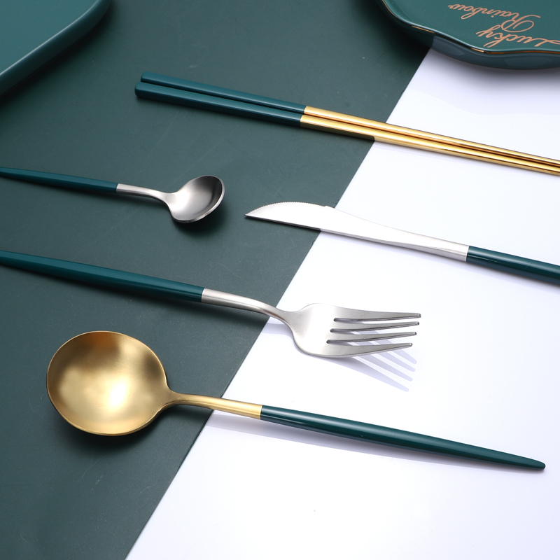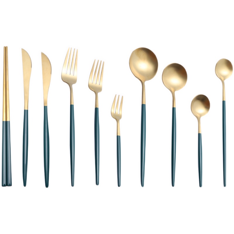 Green Gold Table Spoon (Matte) Green Silver Table Spoon (Matte) Green Gold Table Fork (Matte) Green Silver Table Fork (Matte) Green Gold Table Knife (Matte) Green Silver Table Knife (Matte) Green Gold Coffee spoon (matte) green silver coffee