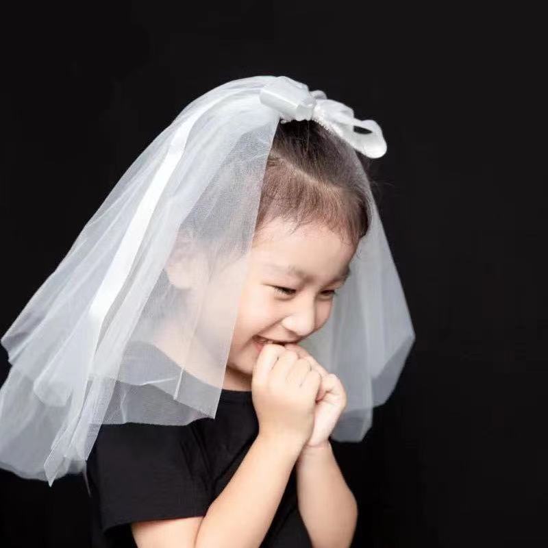 New beautiful veil super fairy child princess white bow accessories Children's wedding dress flower girl comb puff