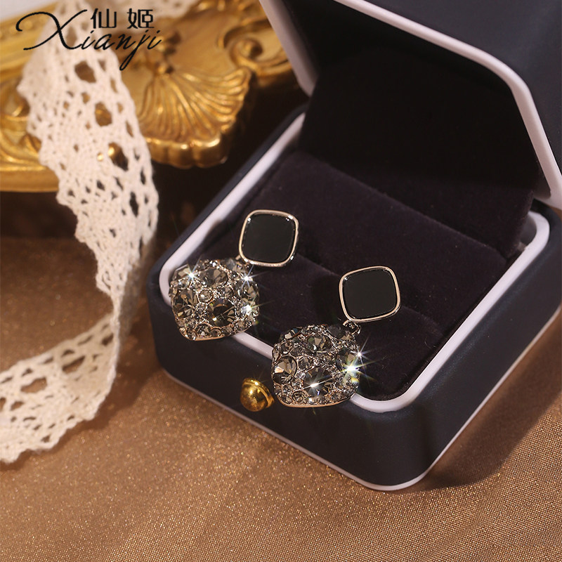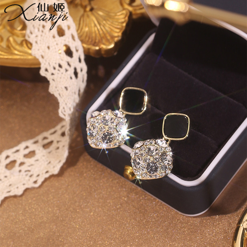 Korean temperament net red new high-end retro Hong Kong style geometric earrings female fashion all-match diamond earrings