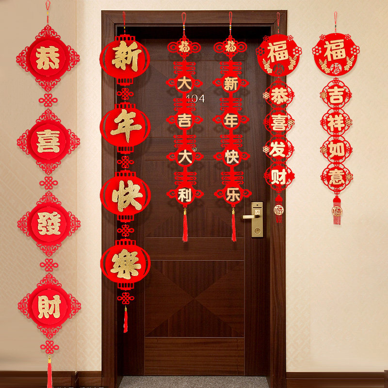 Chinese knot hanging decoration Chinese New Year living room background wall door on the United University Red Fu word hanging holiday decorations