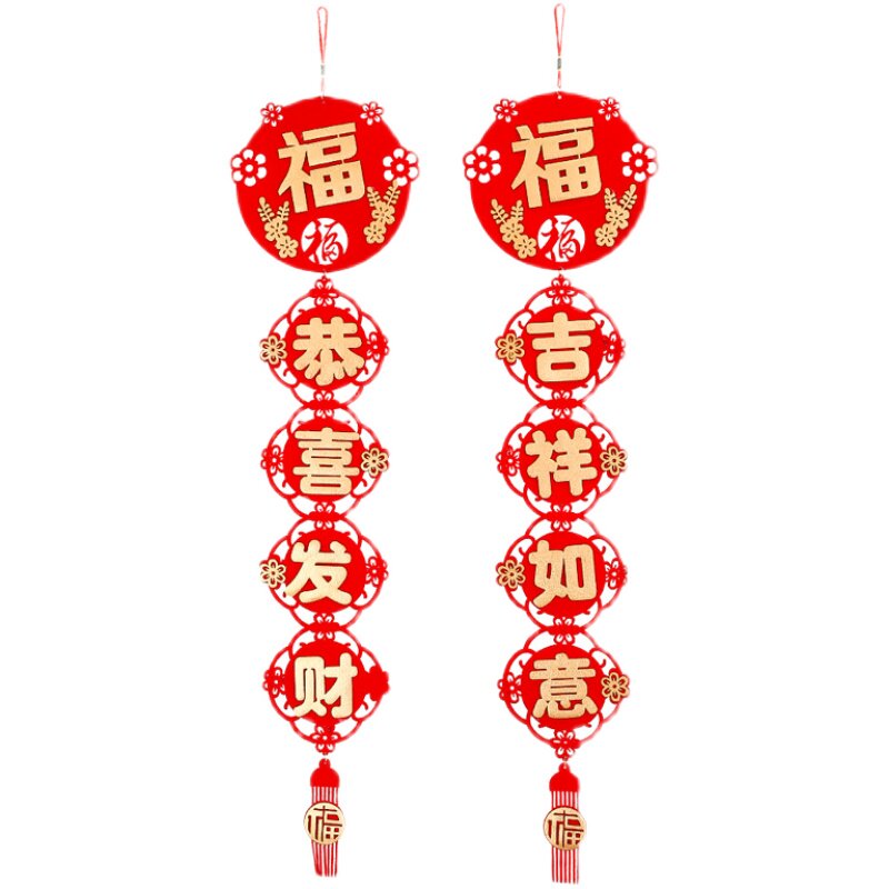 1.6m Happy New Year couplets (1 set) 80cm auspicious congratulations couplets (2 sets) 1.1m Spring characters New Year couplets (2 sets) lengthened 1.8m Congratulations Facai couplets (1 set) Five blessings Linmen lintel (leaflet)