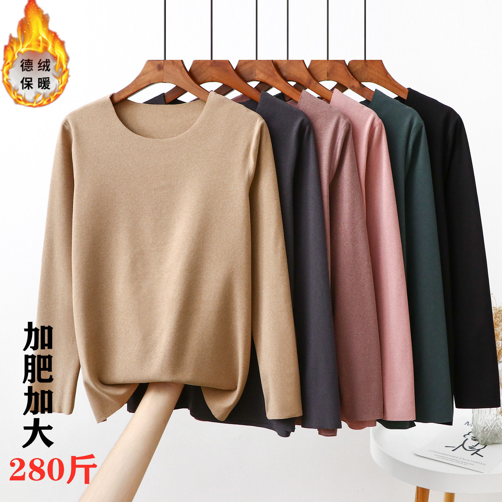Large size German velvet bottoming shirt women's 200 jin fat mm plus velvet thick single-piece top autumn clothes with no trace heat inside