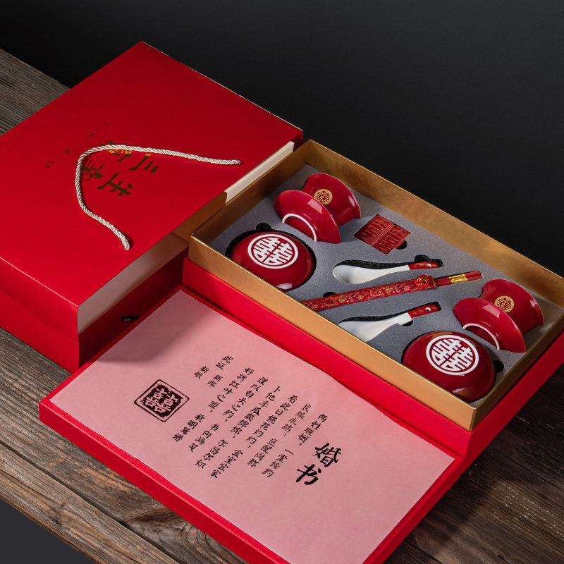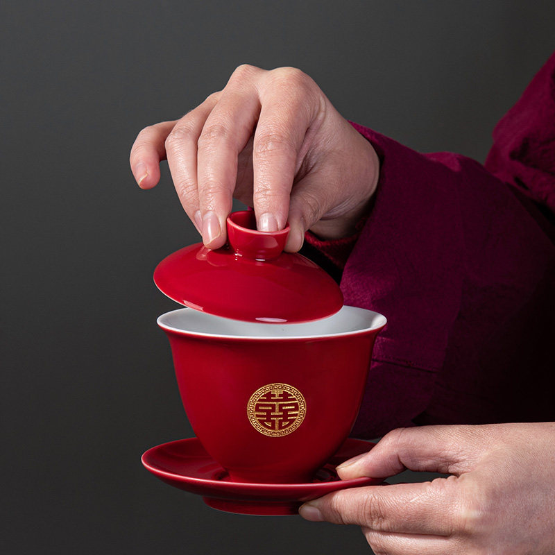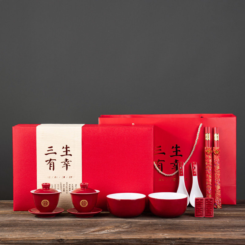 Toast tea cup wedding modified teacup red bowl chopsticks set wedding tea set cover bowl wedding hi tea cup custom gift box