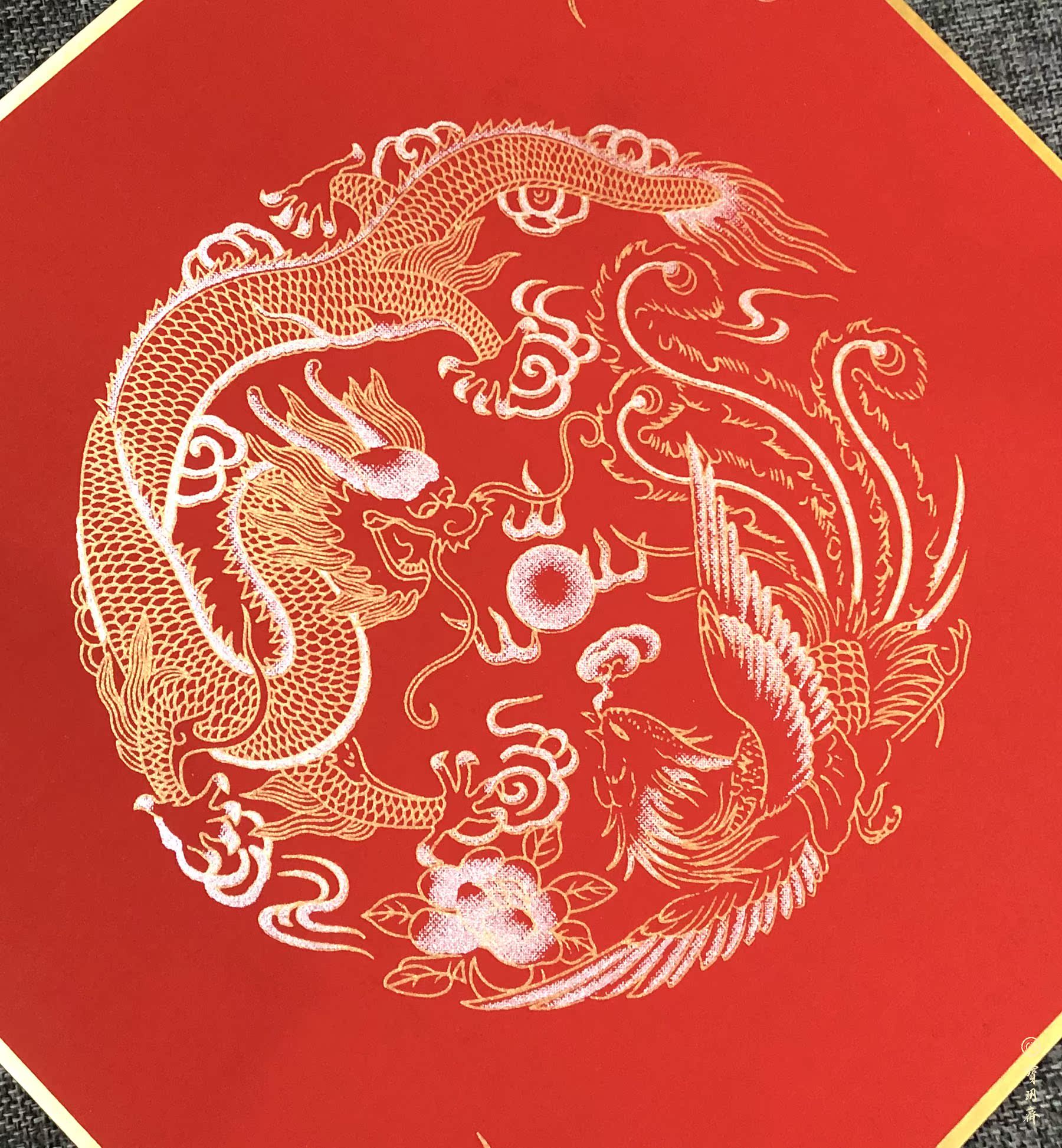 Bao Yueh Ramadan Paper Forca: Painted Dragon Fengfu Ka 32cm * 32cm 1 bag of 5 bags