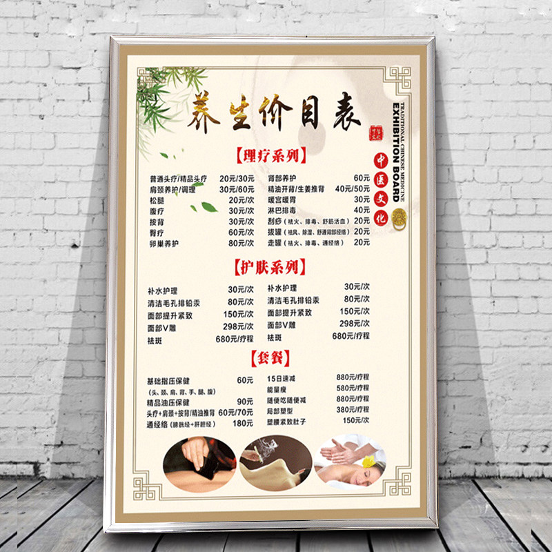 Health club beauty salon project list price list price list custom wall creative high-end Chinese medicine health picture wall chart Chinese medicine foot massage shop project price list poster health project map