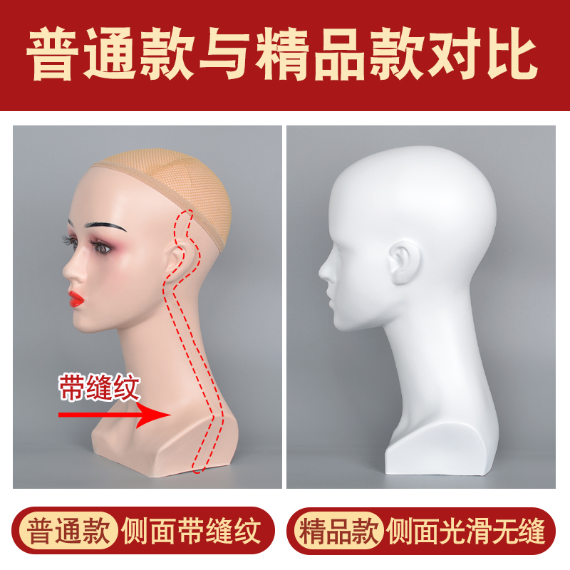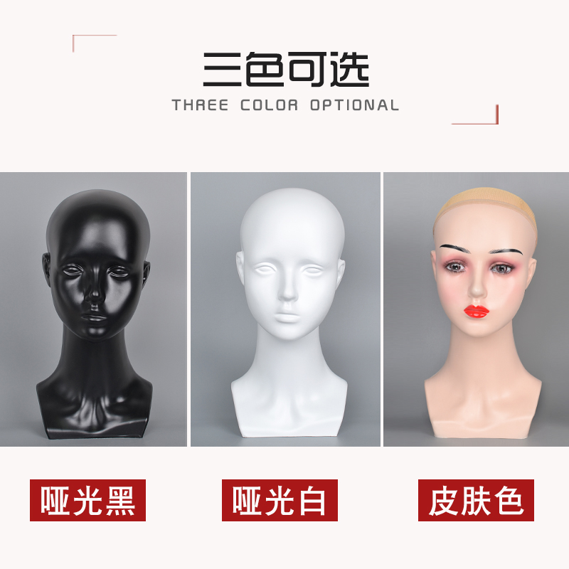 Skin color-ordinary female head-matte white with seams-boutique female head matte black-boutique female head long