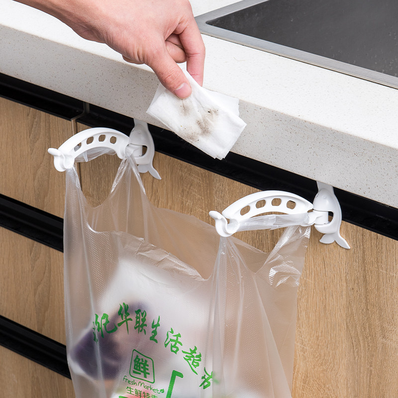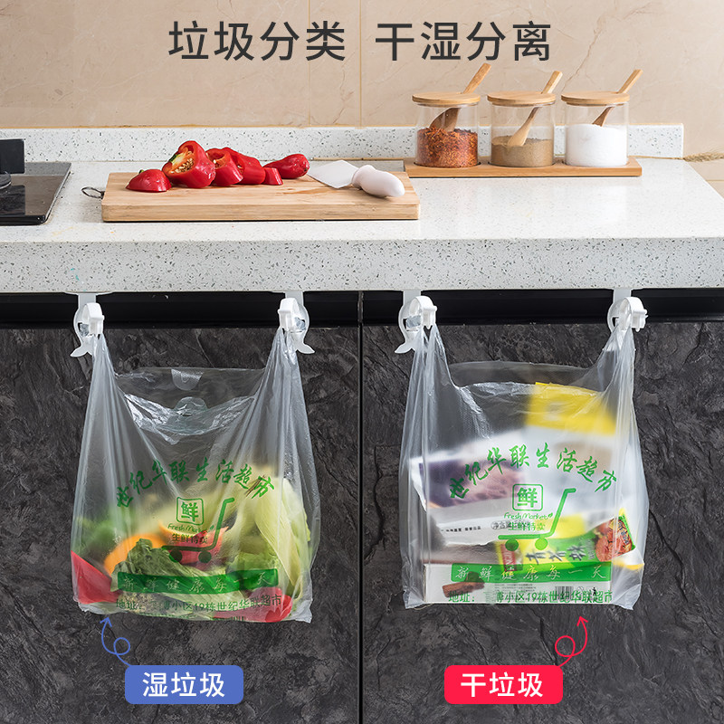 Kitchen household cabinet door garbage bag bracket hook rack plastic bag sorting hanging rack hanging trash bin garbage bin