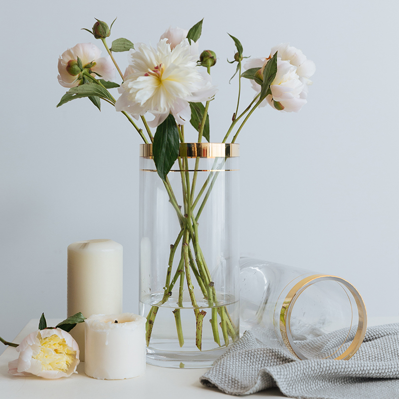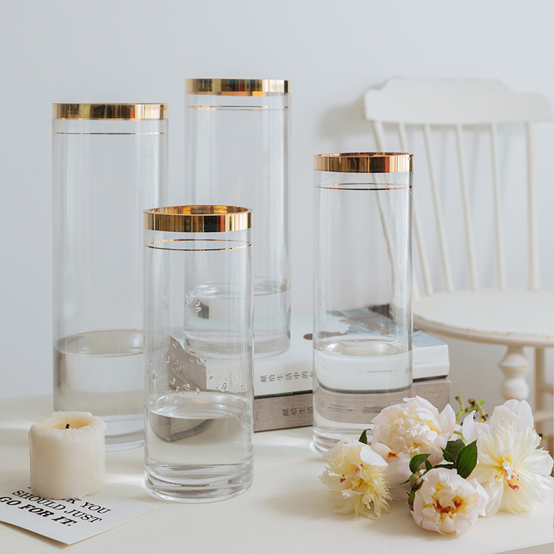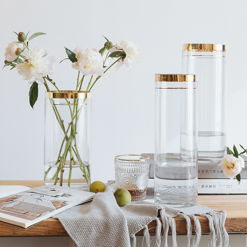 Transparent cylinder glass vase swinging piece living room with flower arrangement water bacon-rich and expensive bamboo flowers light extravagant high-level sensual wind