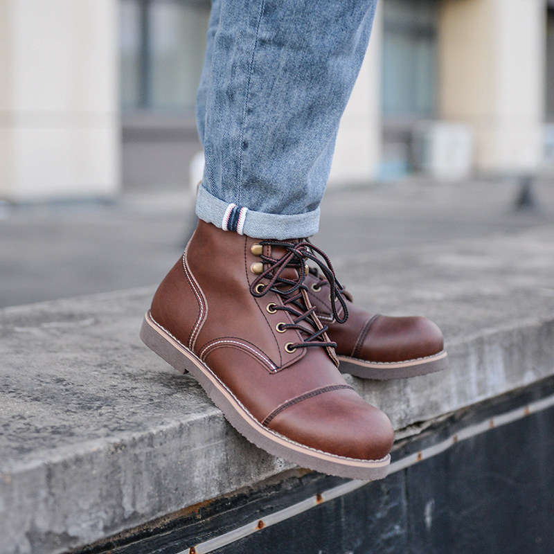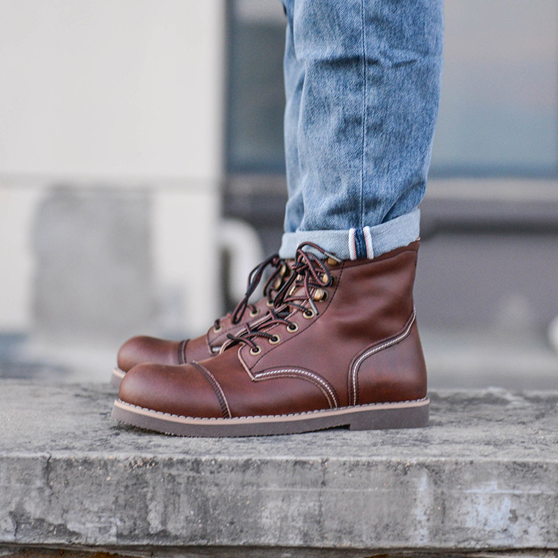Ami Khaji 8111 tooling boots high leather shoes motorcycle boots men's leather lace-up paratrooper boots retro Martin boots tide