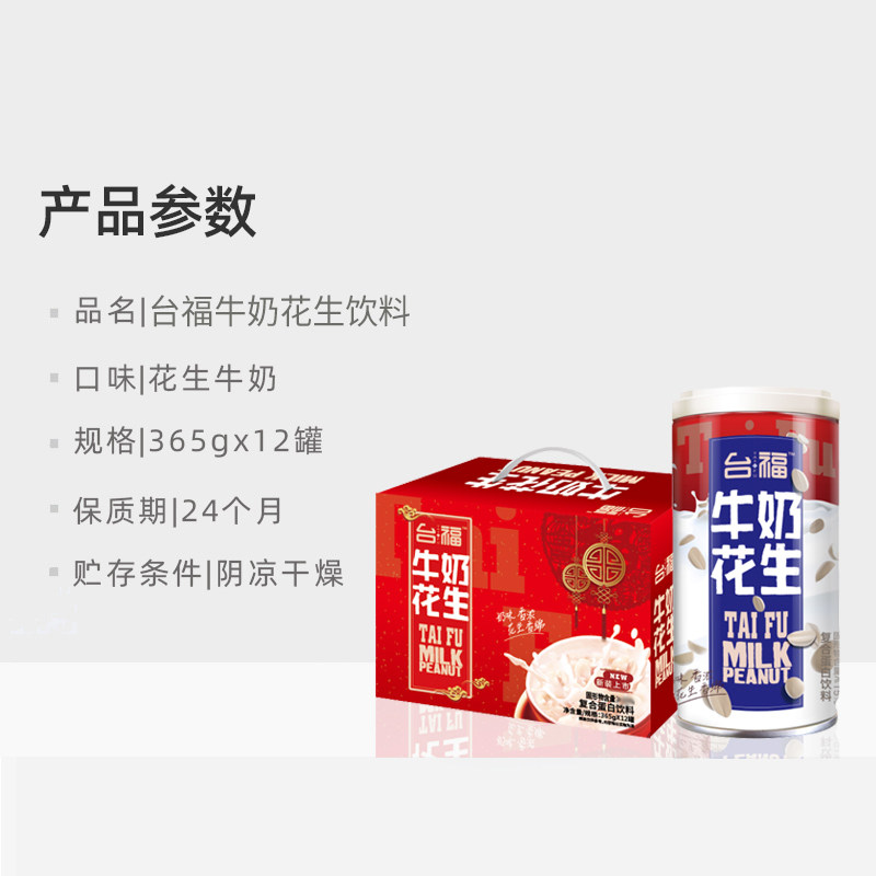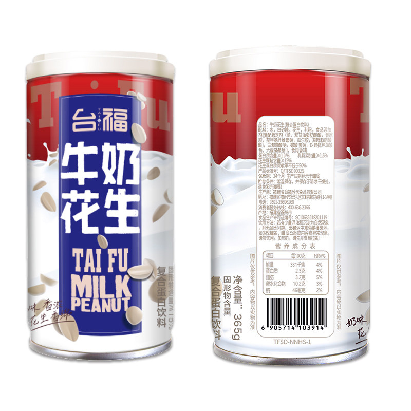 Taifu Milk Peanut Festive Edition 365g*12 Cans of Peanut Granules Beverage Feast Gift Fast Breakfast FCL