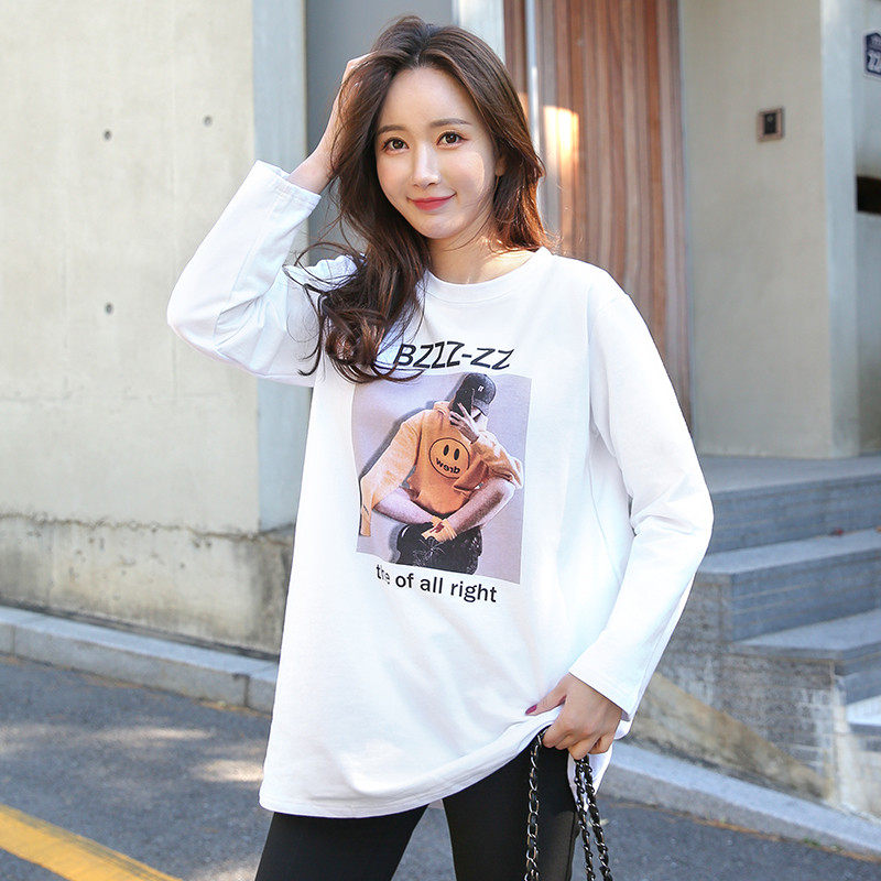 Gush long sleeve T-shirt woman 2022 Spring autumn new Korean version of the long version loose thickened with a white undershirt