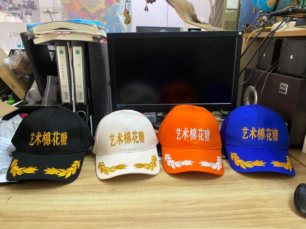 Rice white hat Yellow word black bottom black hat yellow character orange hat blue hat