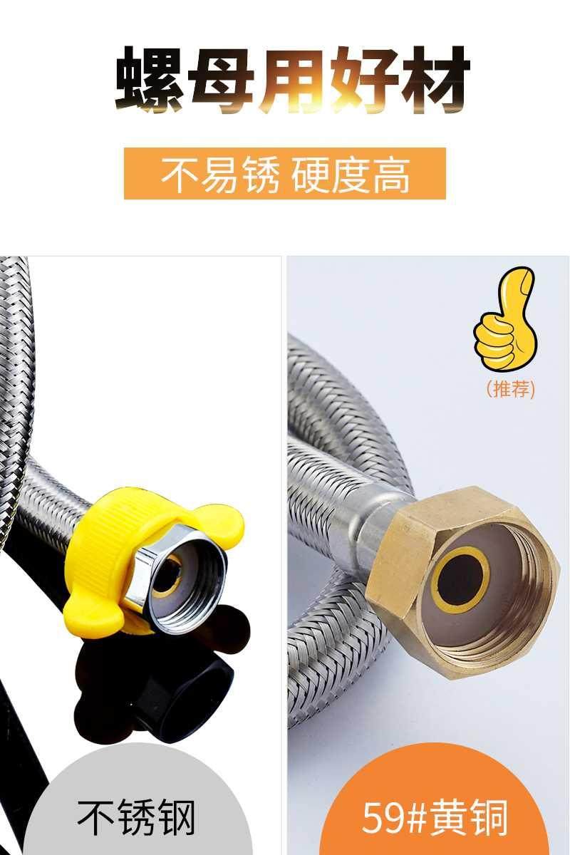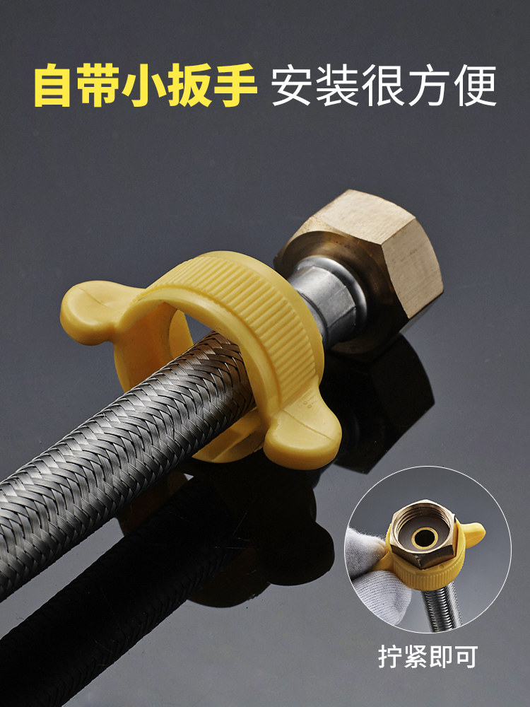 Water heater Connection pipe 304 stainless steel thickened copper head hot and cold water inlet hose water pipe toilet 4 in metal weave