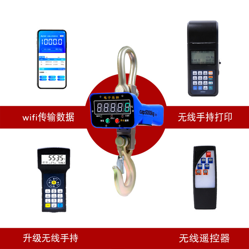 Electronic lifting scales hook electronic scale high precision linked to the weight of the scales Handheld wireless printing 5 tons 10t
