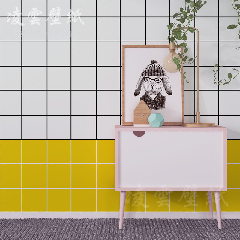 Thickened Nordic Jian Joins Wind wallpaper Plaid yellow Milk Tea Clothing Shop Wallpaper Net Red Bright Yellow Burger Background