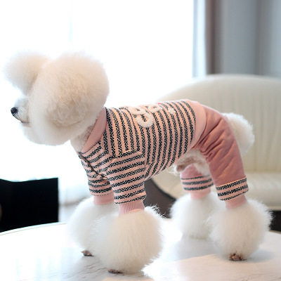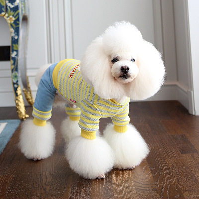 Special price broken code Nick Weir pet Teddy dog cotton clothes small dog striped towel embroidered four-legged jumpsuit - Taobao