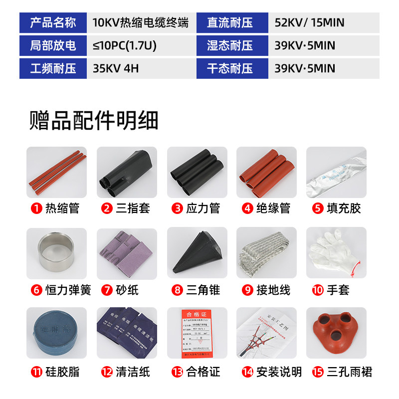 10KV heat shrinkable cable terminal middle three-core outdoor and indoor WSY NSY high-voltage terminal connector