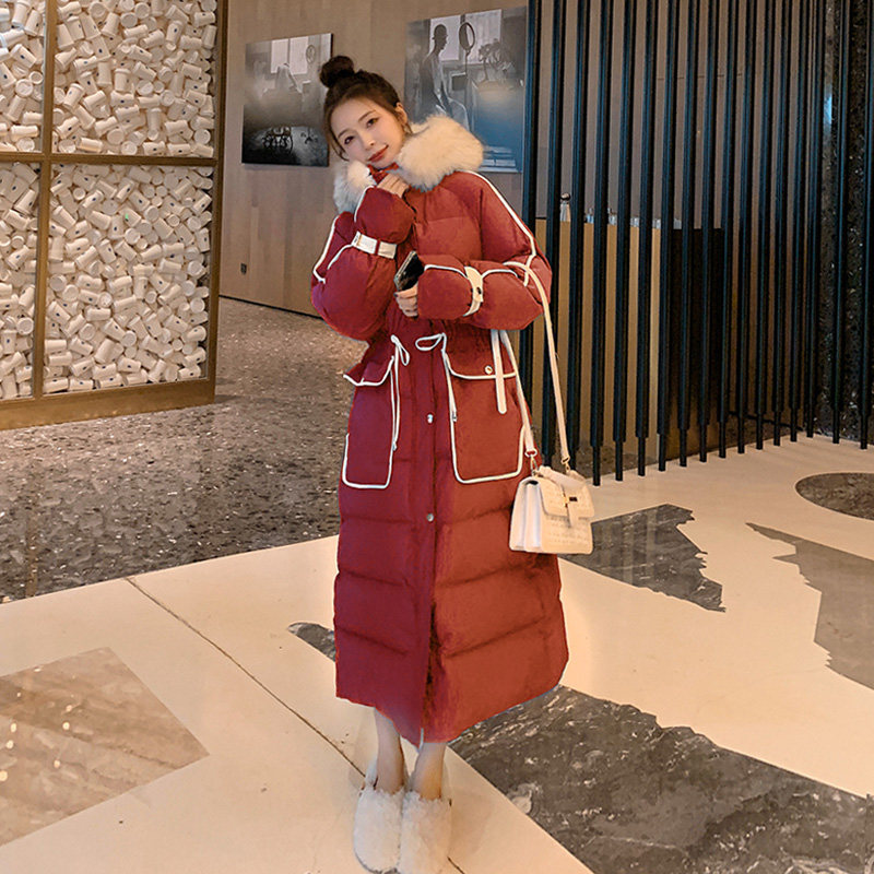 2022 new popular down jacket women's winter long version over the knees waist Korean version loose thickened padded jacket winter coat