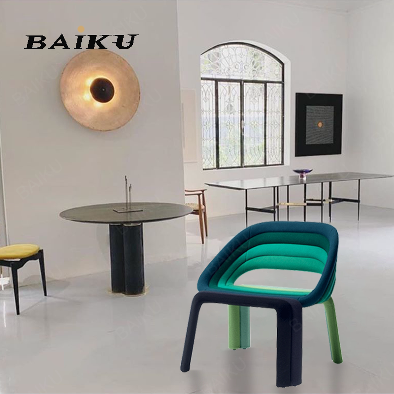 Creative design color splicing special-shaped chair ins Nordic dining chair hotel cafe art glass steel curved pipe chair