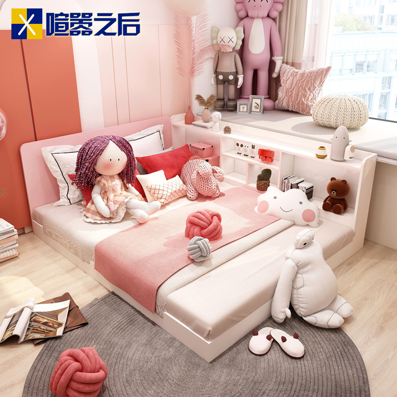 Modern and simple tatami bookshelf bed combination floor-to-ceiling children's bed with bookcase plate storage bed can be customized 8M5