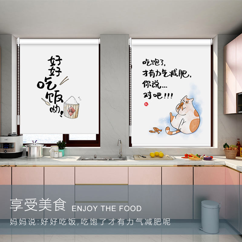 Imefen Kitchen Roller Shutters Waterproof Anti-Oil Stain Home Roll-Out Shading Lifting Hand Curtains Free to Install-Taobao