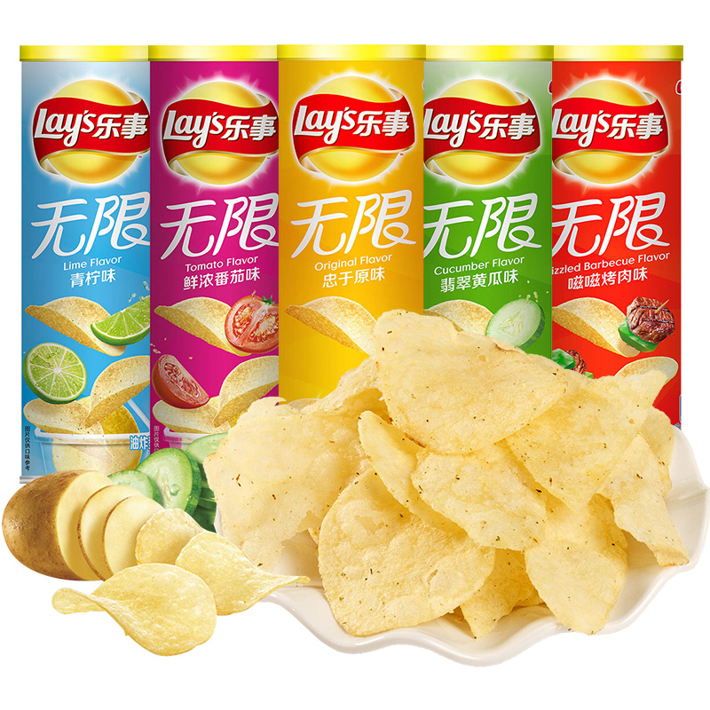Leisure Infinite Potato Chips original taste of grilled meat 90g canned luggage is now the same red casual snack puff food