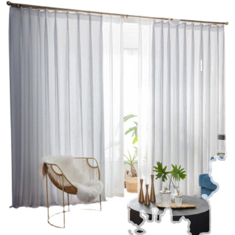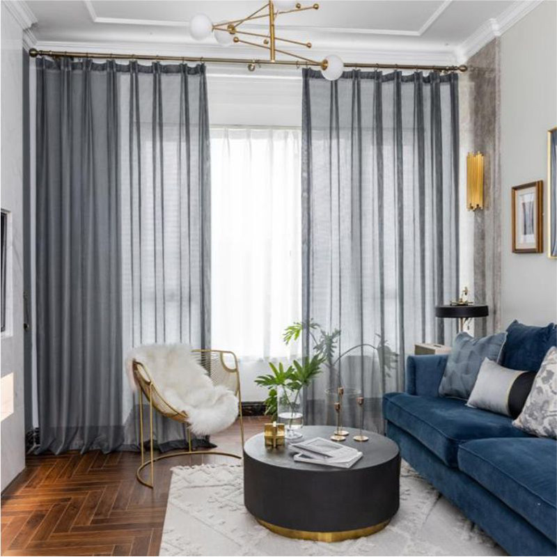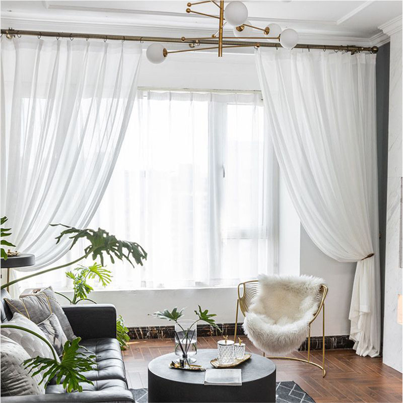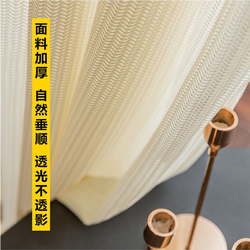 Curtain gauze bedroom living room high drape balcony light impermeable Nordic solid color embroidery hook bay window gauze curtain