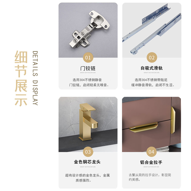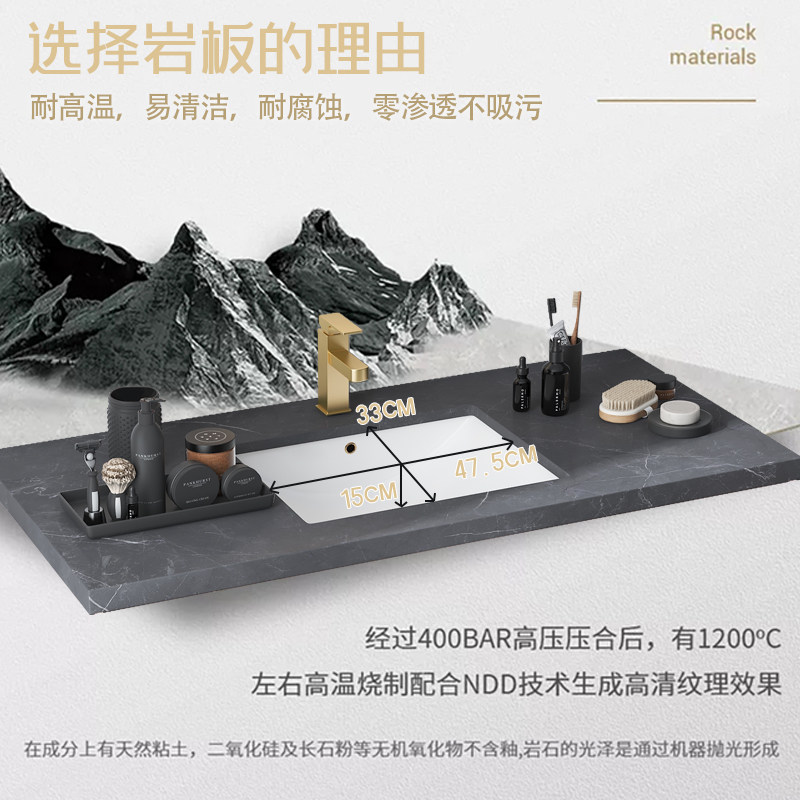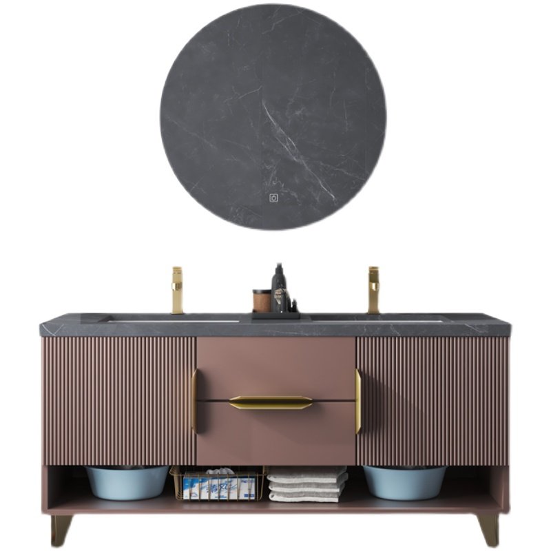 Oak bathroom cabinet Floor-to-ceiling rock panel integrated sink basin cabinet combination Powder room sink washbasin mirror cabinet