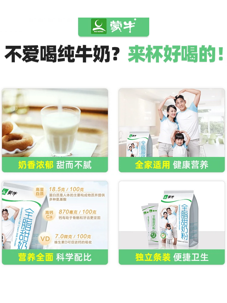 Mengniu full-fat sweet milk powder 400g, a total of 16 pieces ❤ Buy 2 get a cup spoon