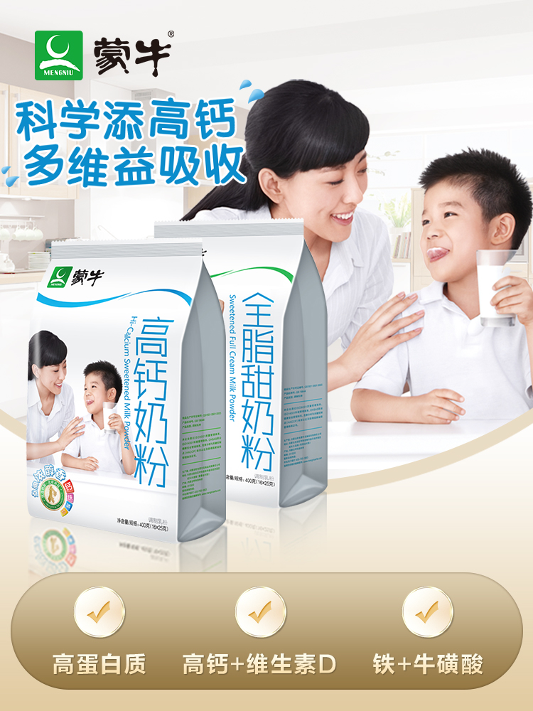 Mengniu high-calcium milk powder 400g, a total of 16 items ❤Buy 2 and get a cup scoop Mengniu full-fat sweet milk powder 400g, a total of 16 items ❤Buy 2 and get a cup scoop Mengniu family high-calcium milk powder 300g bag❤