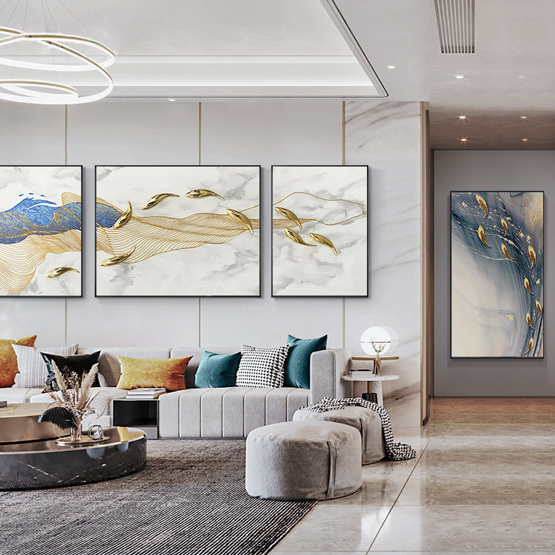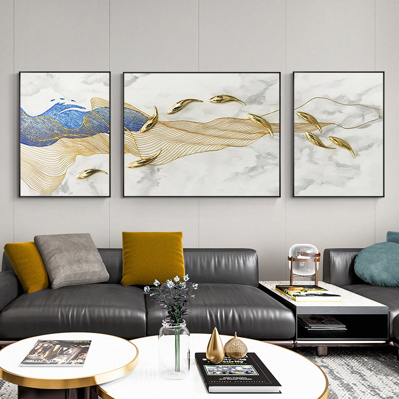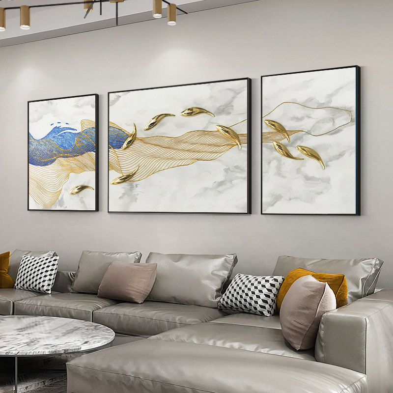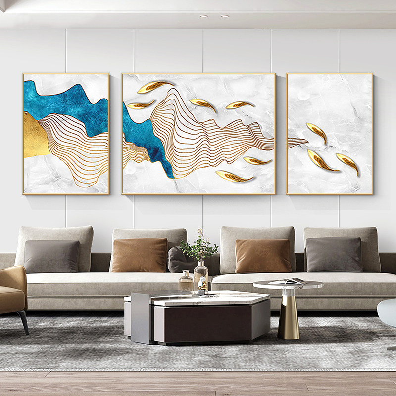 Ninth Fish Picture Light Luxury Living Room Decorated High-end Sofa Background Wall Triple Collection Murals