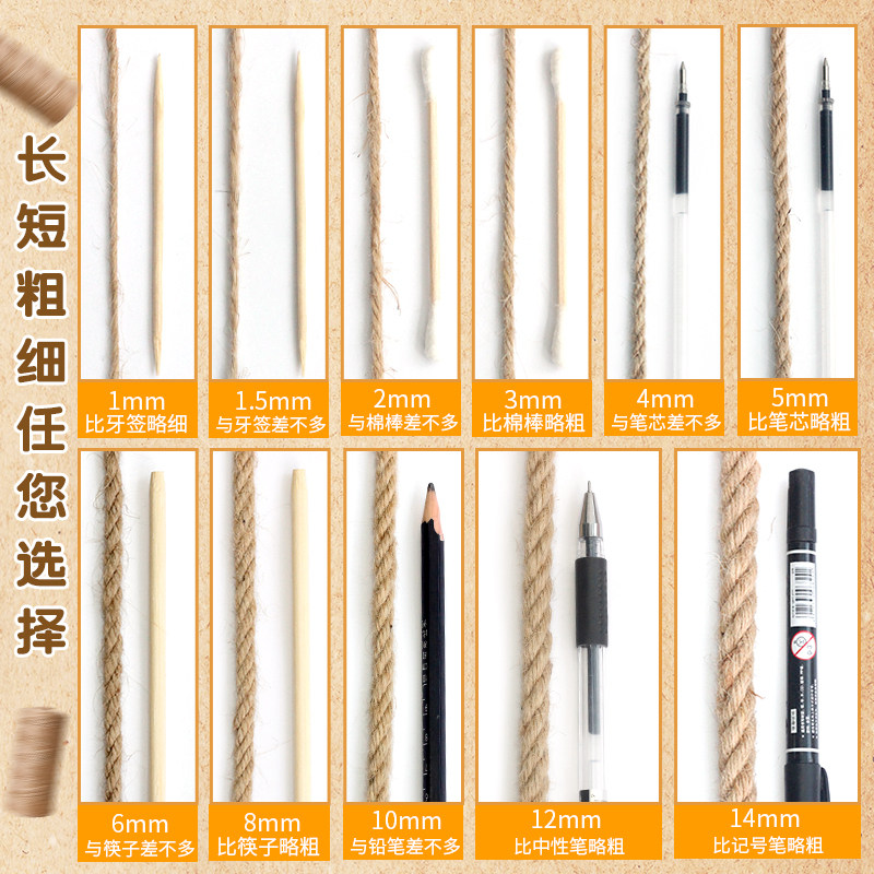 Hemp Rope Rope Hemp Rope Hand-made Diy Woven Rope Binding Rope Fine Coarse Hemp Thread Rope Kitty Retro Decoration Photo Wall