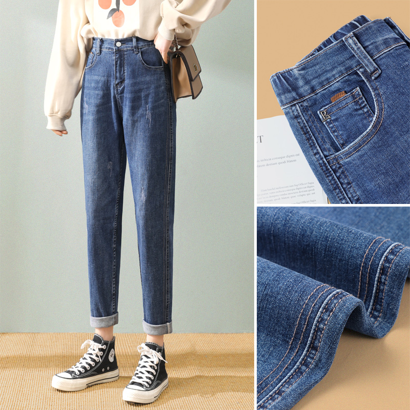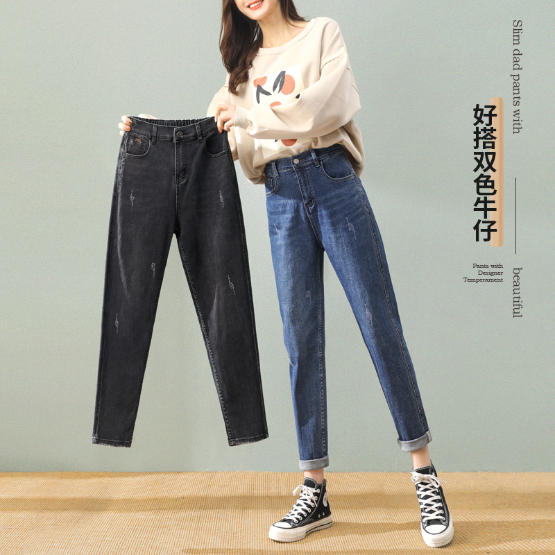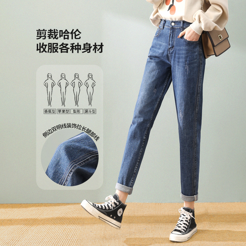 High-waisted jeans women's straight-leg loose autumn clothes 2022 new style slimming washed nine-point all-match harem daddy pants