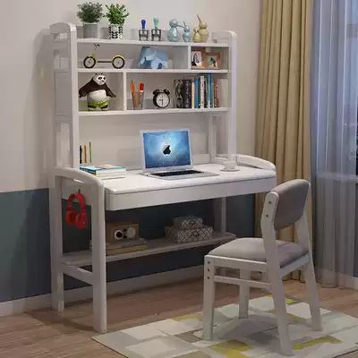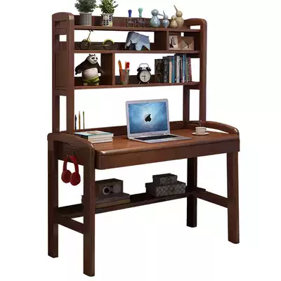 All solid wood desk with bookshelf integrated desk for primary and secondary school students writing learning desk can be lifted home office desk