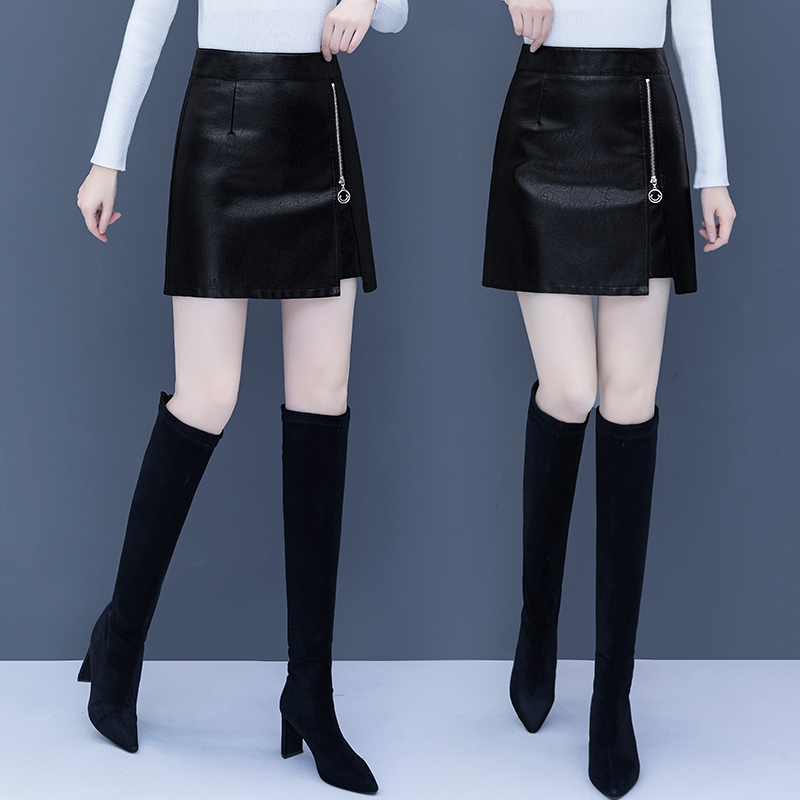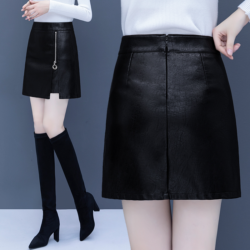 Leather skirt women's winter 2022 new high waist skirt temperament bag hip skirt slim a-line skirt autumn and winter fashion skirt