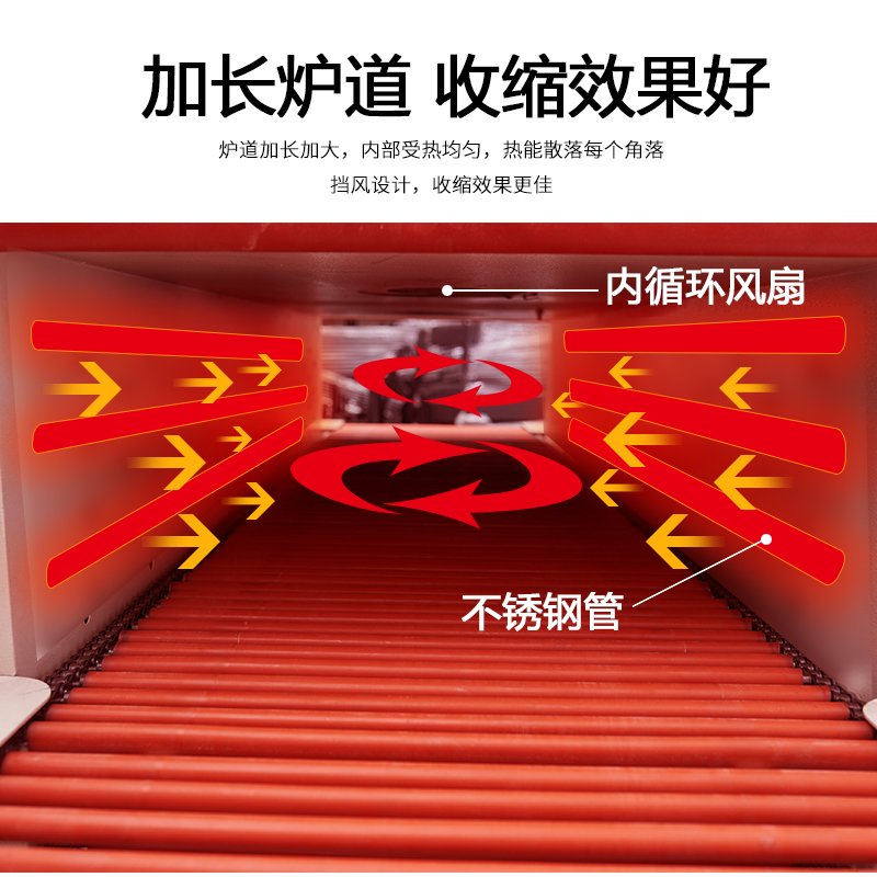 Lengthened furnace channel heat shrinkable film cosmetics tea gift bag book POF sealing machine automatic plastic packaging machine