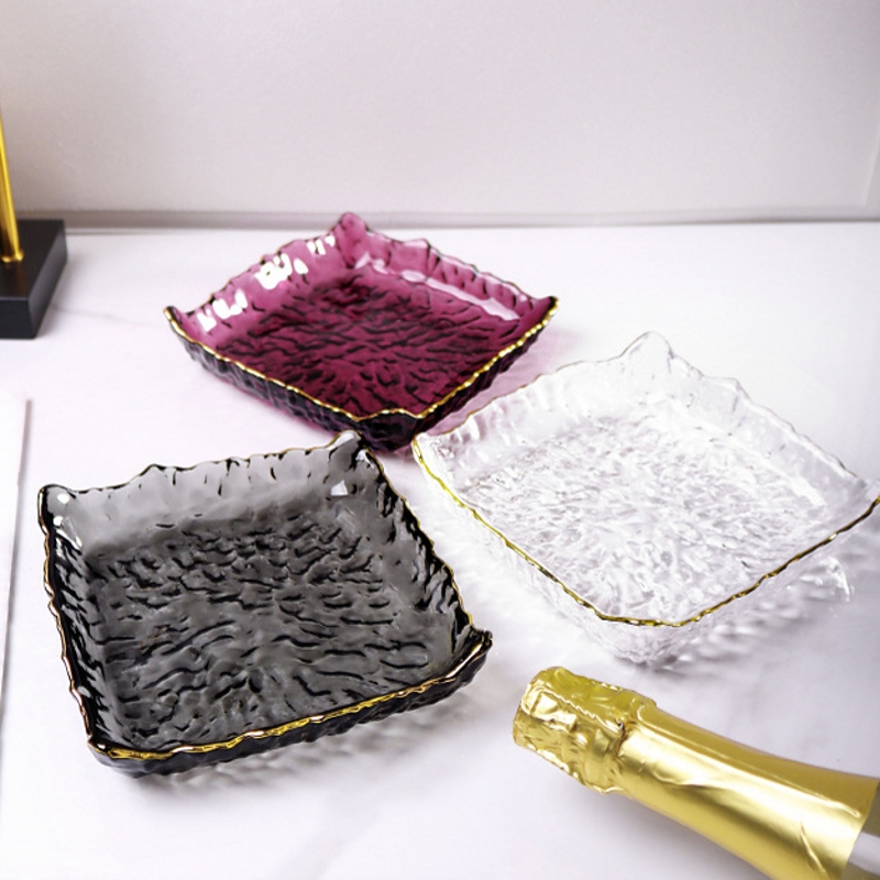 Japanese creative Phnom Penh transparent square glass plate Nordic in fruit disk snack dish salad bowl