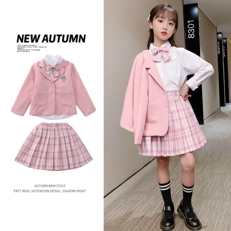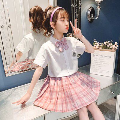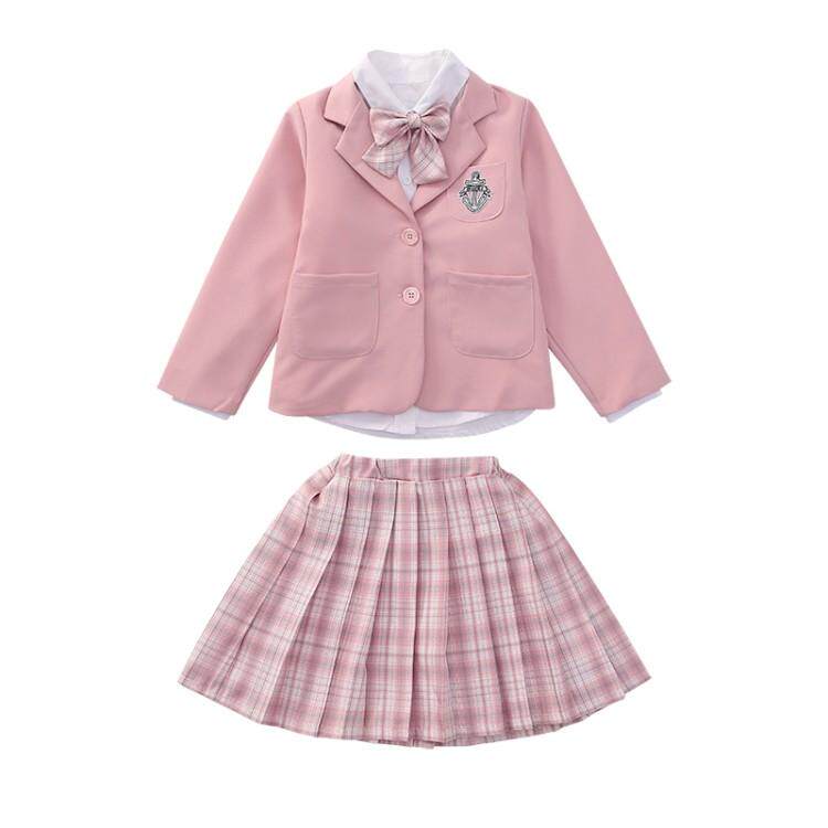 Pink blazer Blue blazer Blue short-sleeved shirt Skirt Pink short-sleeved shirt Skirt Pink long-sleeved shirt Skirt Blue long-sleeved shirt Skirt Pink short-sleeved shirt Jacket Skirt