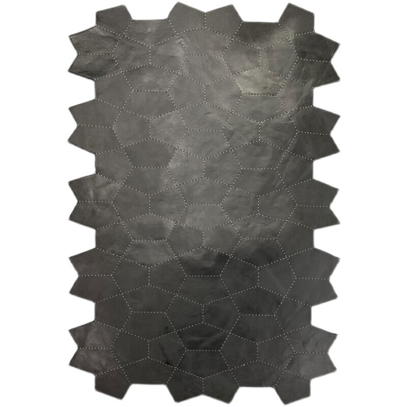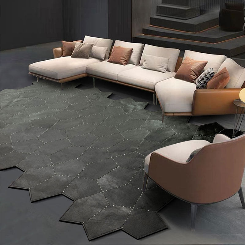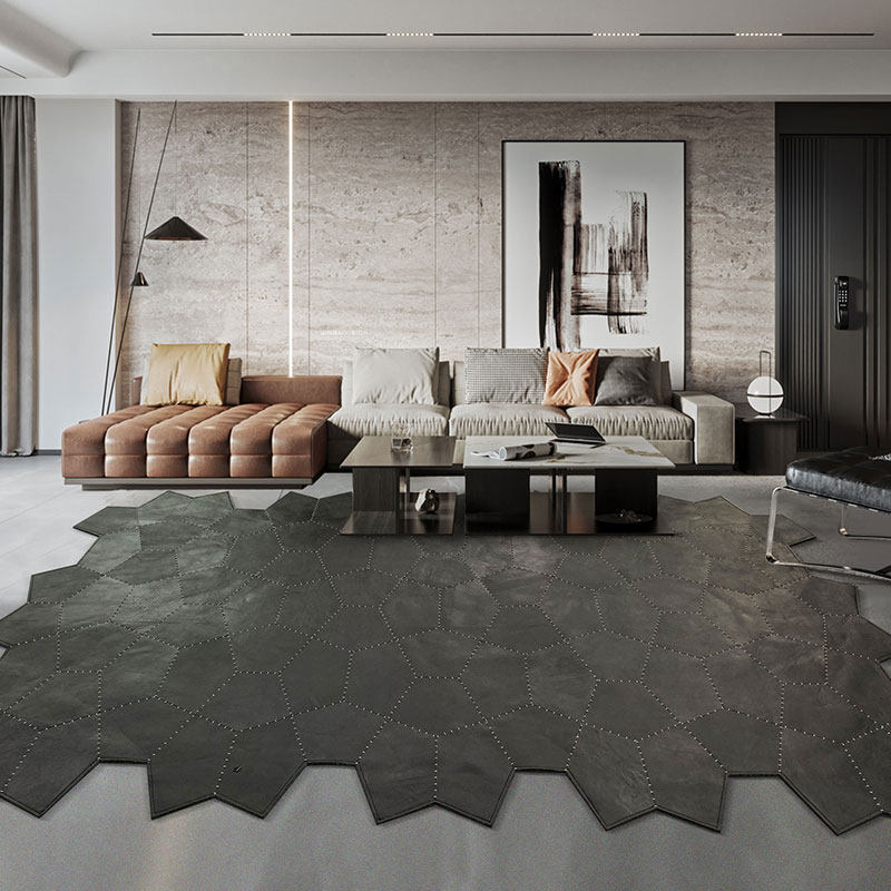 High-end light luxury pure black leather stitching carpet home Nordic modern minimalist living room coffee table bedroom irregular